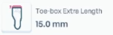 Define the perfect length of the toe-box by choosing the desired length to be added from the toes onward. |