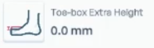 The height of the toe-box is defined by the height of the instep between the landmarks placed in the initial step. You have the possibility to modify this feature here. |