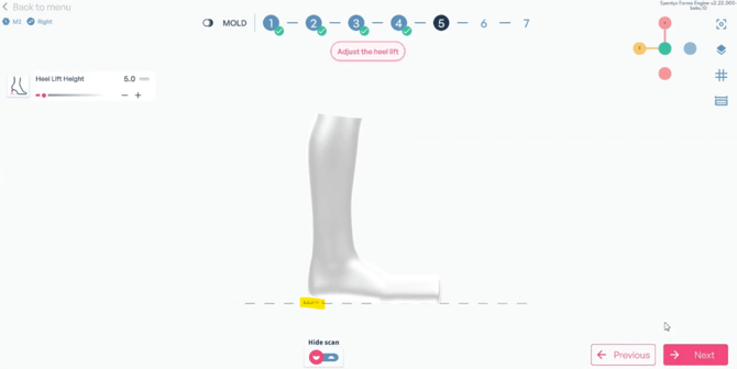 Once step four is done, we're able to apply a heel lift to our mold. Simply by using the slider or entering your desired heel lift and it will be automatically applied.