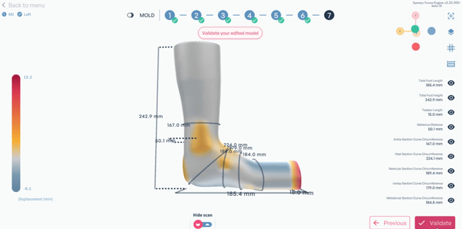 The final validation step now allows you to verify the new measurements of the mold. This step is the final validation before we go to our final sculpting step.
