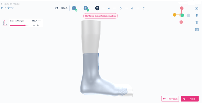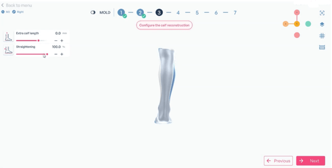 This step will allow you to ad extra length to the scan, but also to straighten the calf. As you make the modifications, you'll always get a reference of the original scan to compare it to.