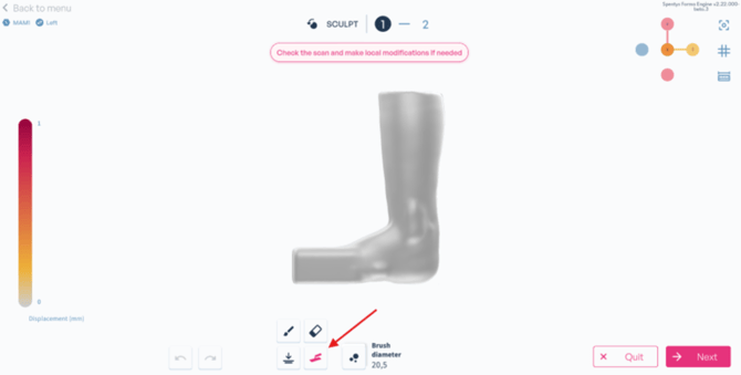 The final step is called the ‘sculpting step’. This step could be used to create some local buildups, outside of those we’ve created and chosen in the previous step. In this step you could create positive or negative local offset, simply by drawing on the scan and choosing the amount of buildup you’d like to use.