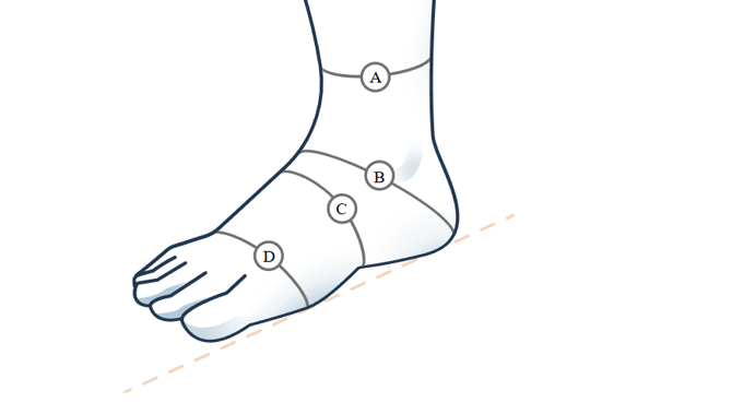 Measurements should be taken in a non-weight-bearing position (e.g. sitting with the foot hanging)