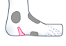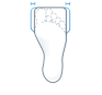 Alters the fit around the base of the 5th metatarsal, often for added width in this area |