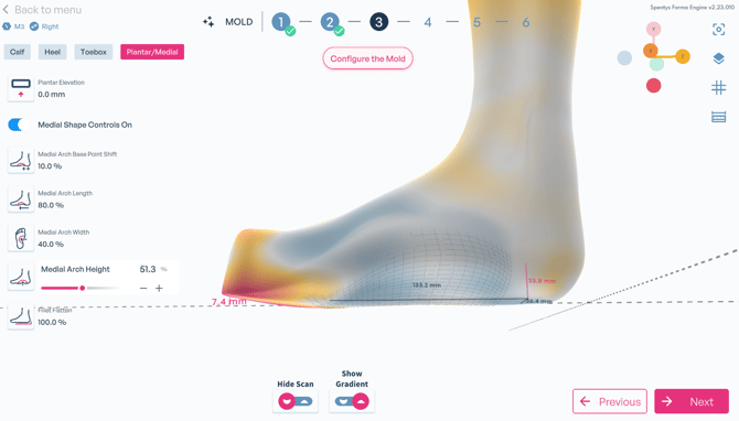 The parametric workflow introduces enhanced control over the plantar surface and medial arch.