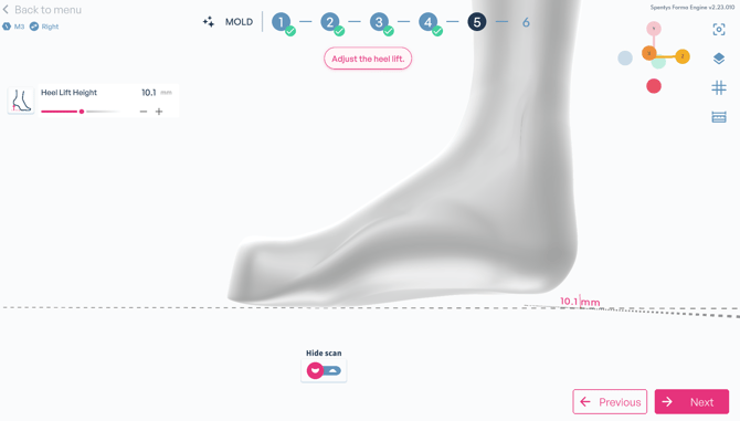 After defining the main structure of the mold, you can apply a heel lift.