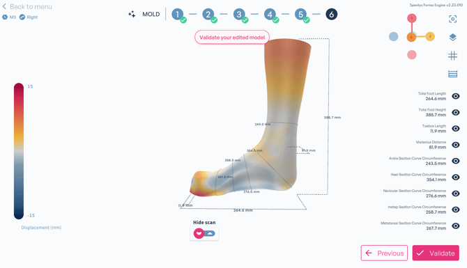 The workflow includes the familiar controls from the previous version, allowing you to crop the scan, extend the cuff length, or straighten the calf. These tools remain useful for basic alignment and preparation.